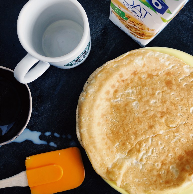 There are endless recipes online for vegan pancakes and many recipes for vegan crepes. I have read what feels like 150, in reality it was probably more like 5. Then I decided just to go for it. No eggs. No dairy.