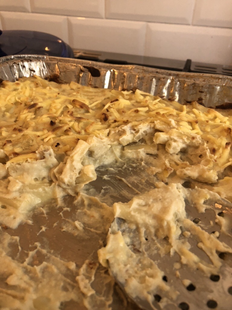 This is not a pretty dish. Sure, you can make it in individual ramekins and dress it up with toppings, but it remains essentially a soft, sloppy, unctuous spoon-food that will warm your heart as well as your cockles, reminding you fondly of the comfort brought by the original dairy version.