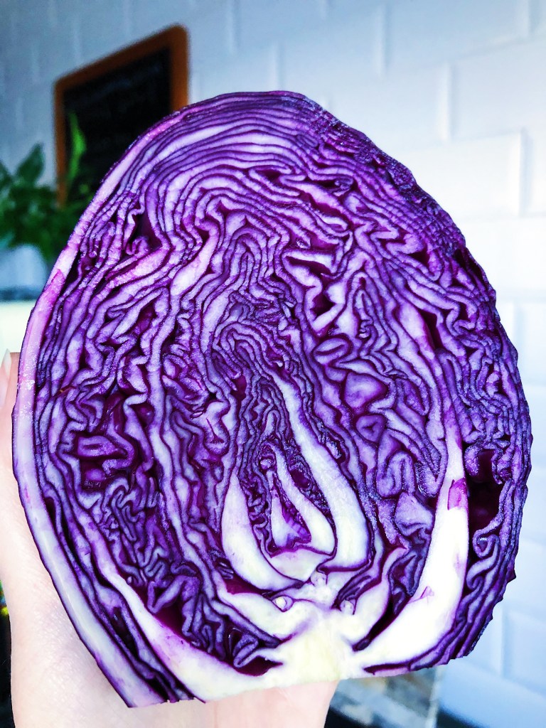 One whole head of red cabbage