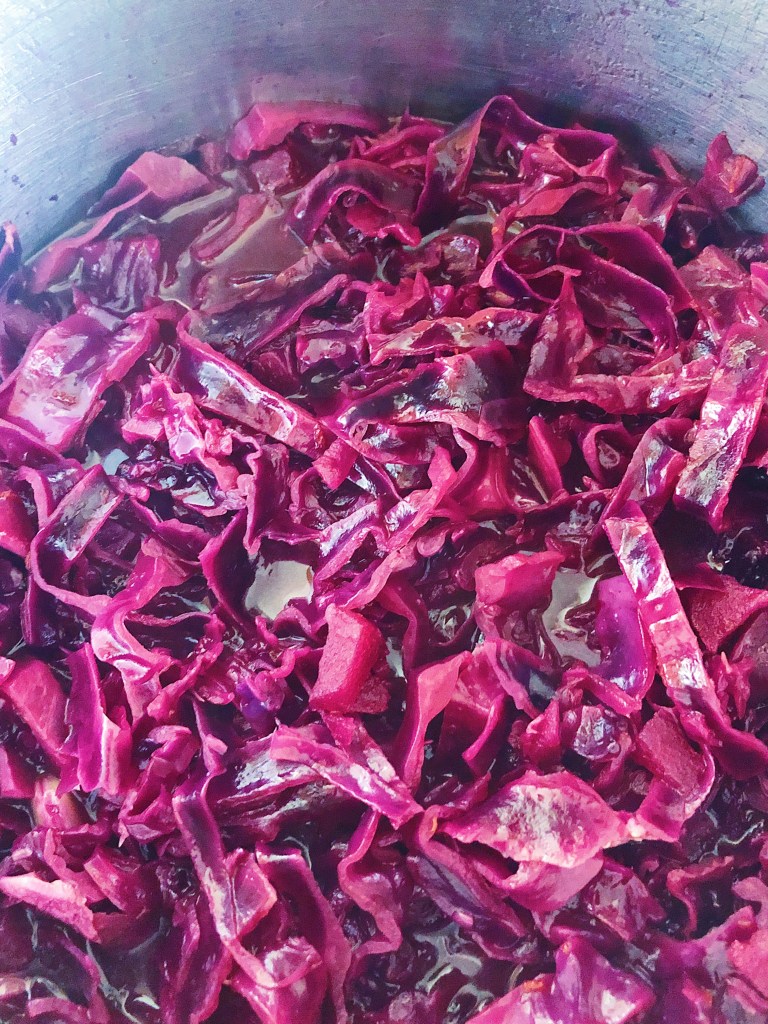 Yesterday I prepared my Christmas Day vegetables and took photos of the key steps of this red cabbage recipe, planning to sit down in the evening or this morning to write a piece that would be filled with joy, hope and perhaps reinforced with witty repartee. The latter criteria is subjective but over the years, I have grown comfortable with laughing at my own jokes.